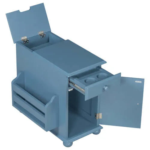 Vintage Flip-Top Sofa Table w/ USB, Cup Holders & Hidden Shelf-Blue