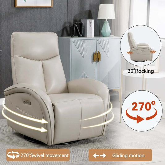 Leatheraire Swivel and Rocker Power Recliner Chair - Beige Grey