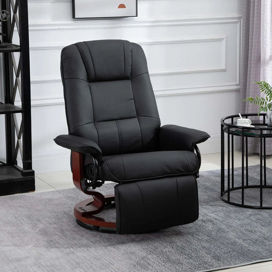 HOMCOM Faux Leather Manual Recliner with Swivel Wood Base - Black