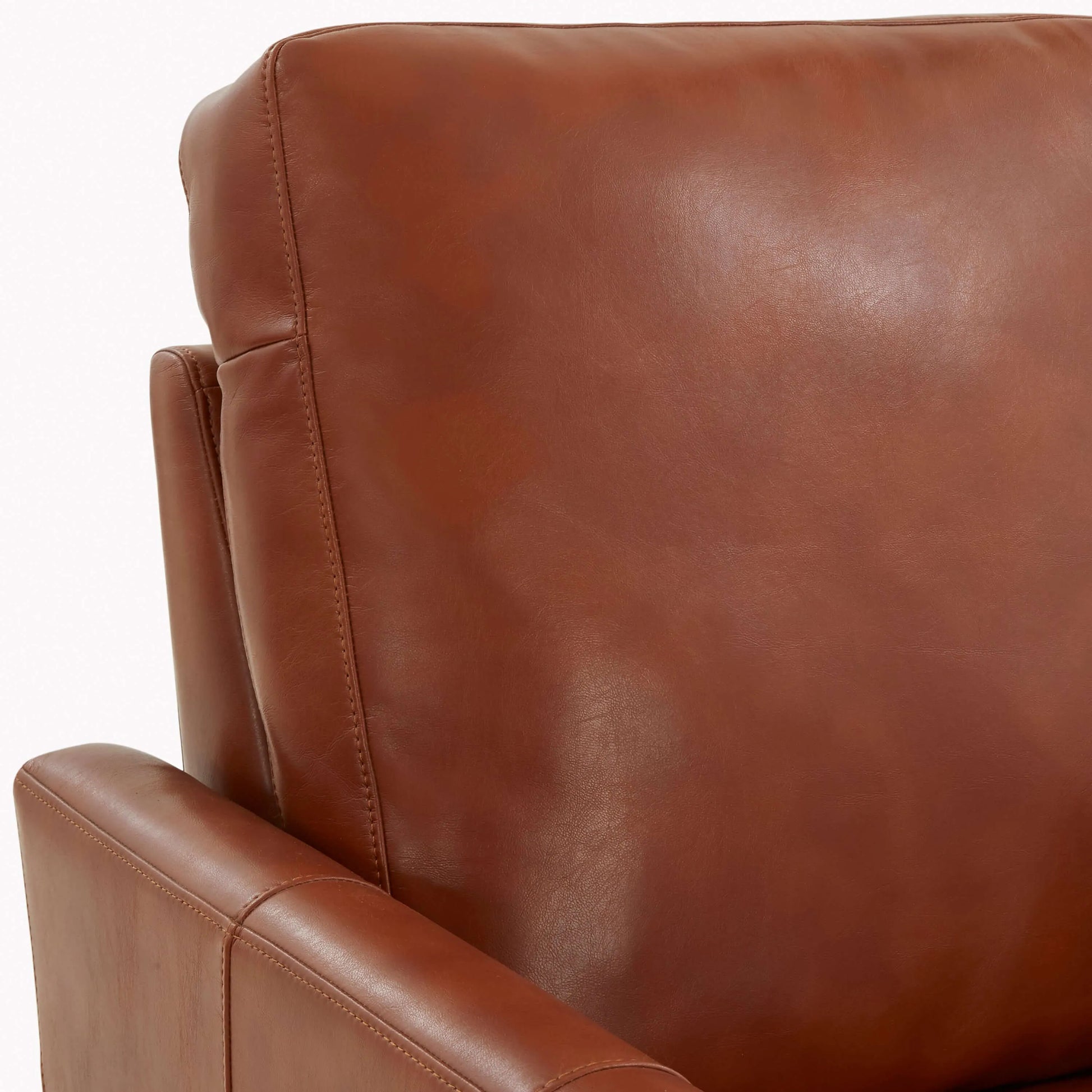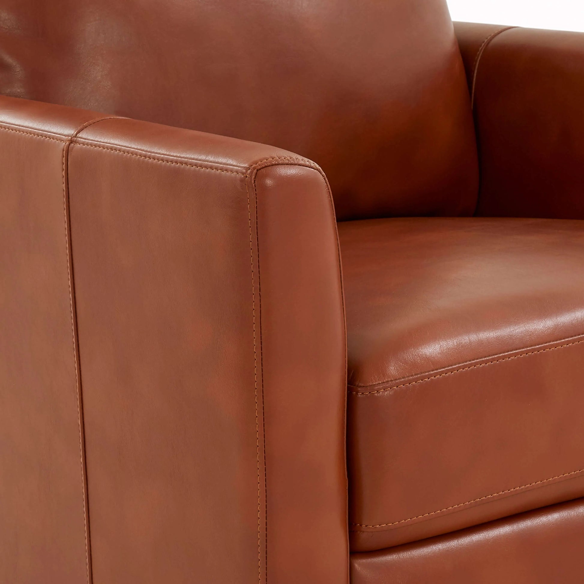 Rich caramel faux leather offers a luxurious look with easy-clean convenience. This warm, inviting shade adds cozy elegance to your space while being soft to the touch and durable.