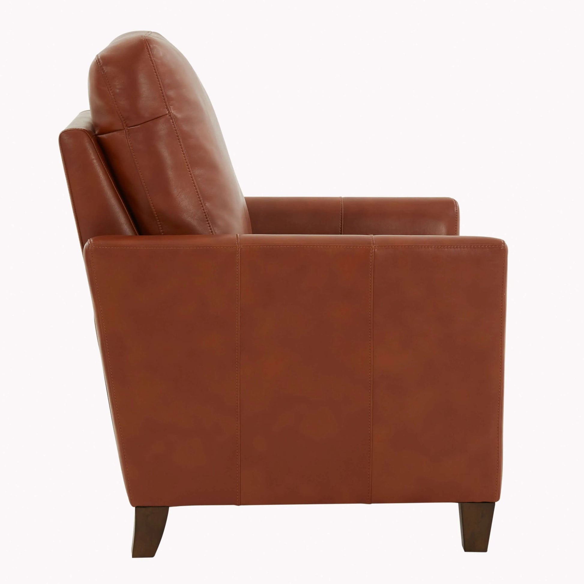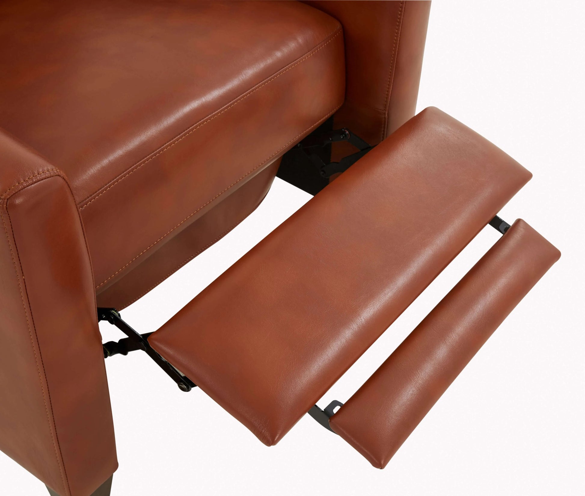 Chic modern style meets effortless comfort. The Penny Faux Leather Modern Recliner combines sleek mid-century design with plush relaxation. Wrapped in warm caramel faux leather and featuring elegant tapered wood legs, this manual push back recliner delivers contemporary style without the fuss. Simply lean back to recline—no levers, no buttons, just smooth, intuitive motion.