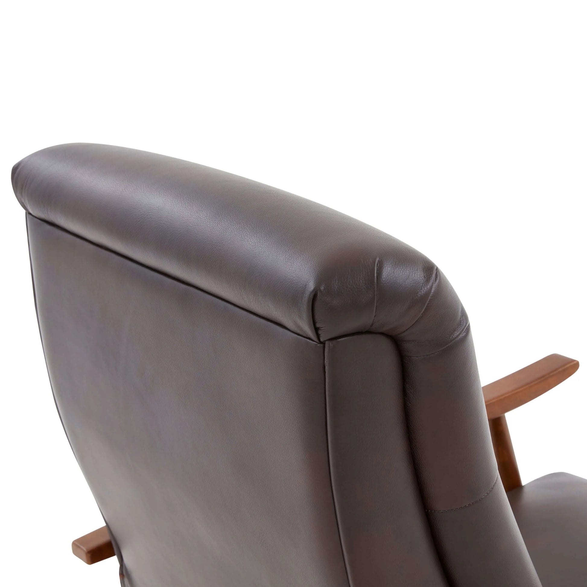 🤎 Solaris Wood Arm Push Back Recliner in Burnished Brown – Modern Style with Leather Gel Comfort