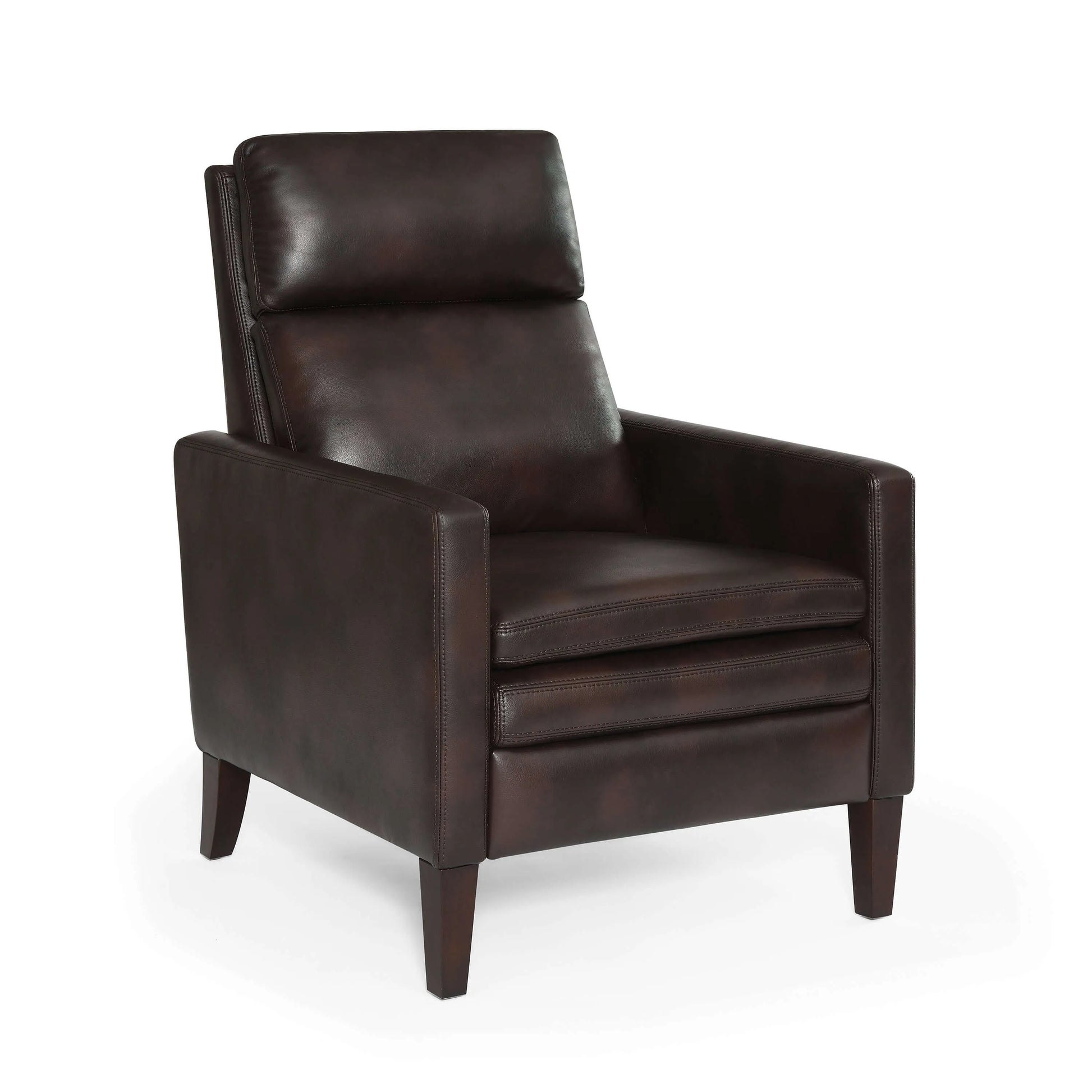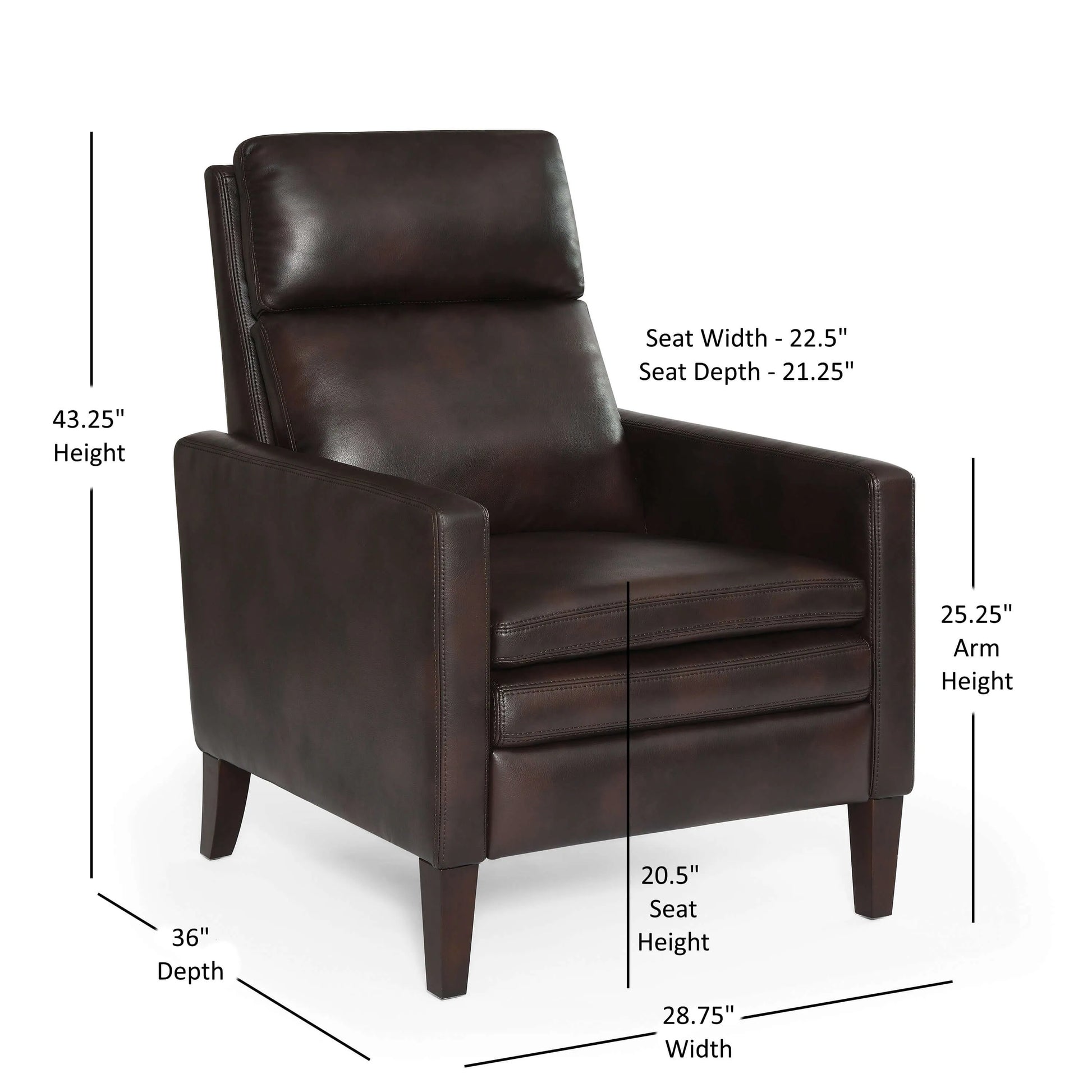 Modern style meets effortless comfort. The Vicente Push Back Recliner combines contemporary design with plush relaxation. Wrapped in rich burnished brown faux leather gel and featuring solid hardwood legs, this manual push back recliner delivers modern style without the fuss. Simply lean back to recline—no levers, no buttons, just smooth, intuitive motion.